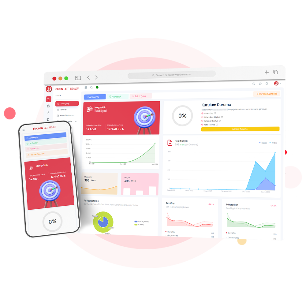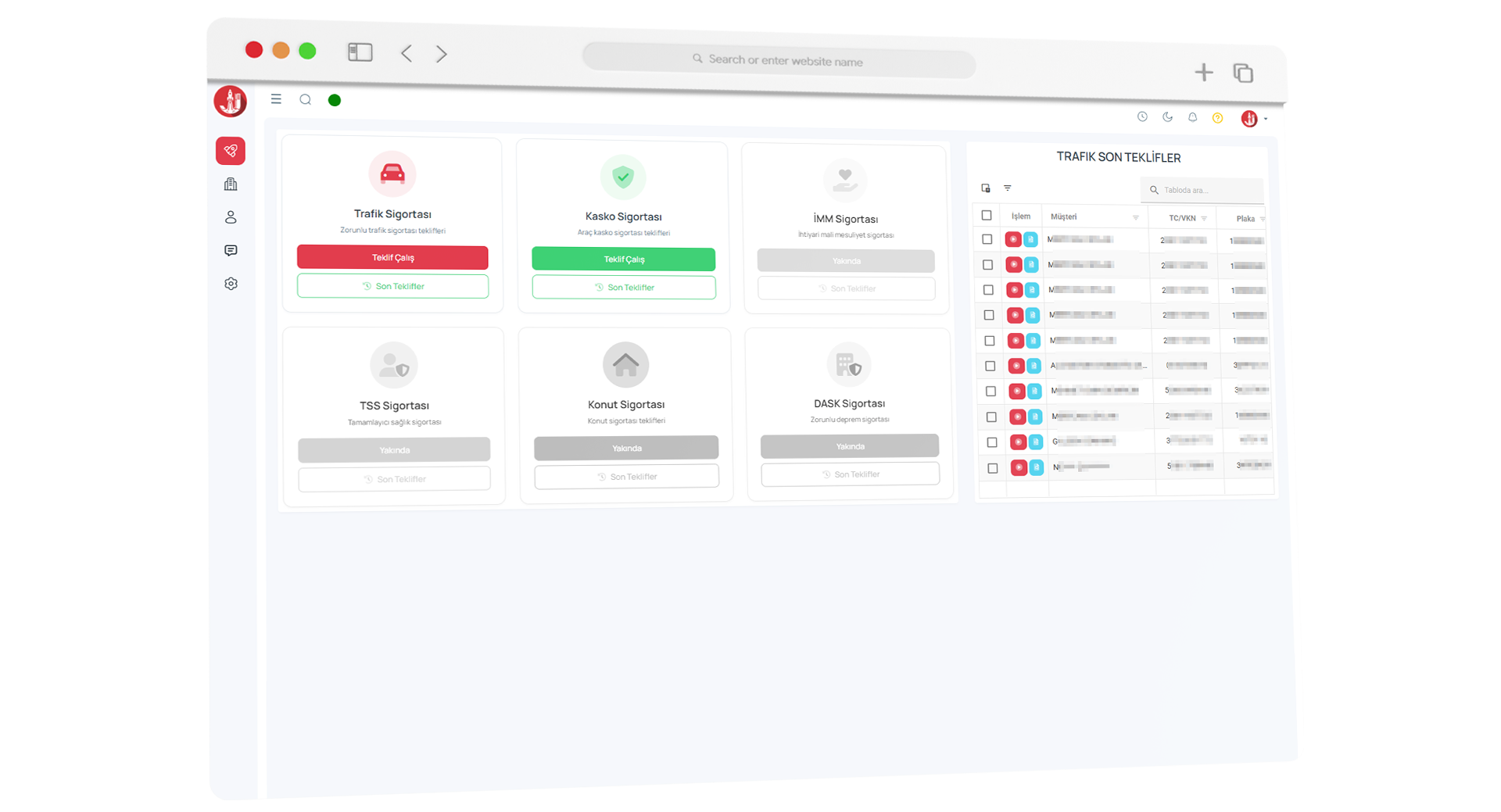 Trafik ve Kasko sigortası tekliflerini saniyeler içinde oluşturmanıza olanak tanırken, "Son Teklifler" listesi sayesinde geçmiş çalışmalarınızı ve müşteri verilerinizi anlık olarak takip etmenizi sağlar.